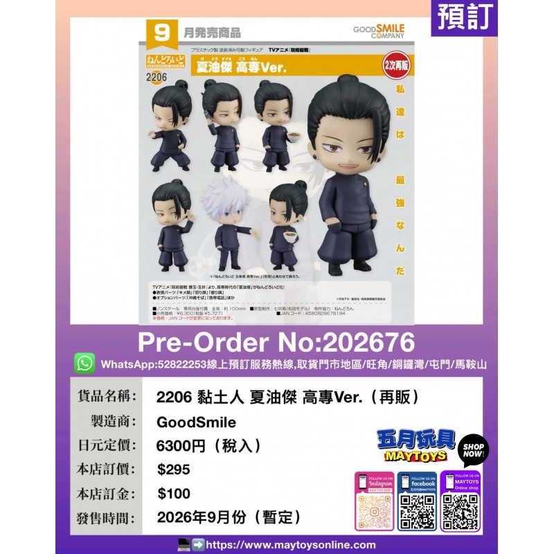 2206 黏土人 夏油傑 高專Ver. (再販)
