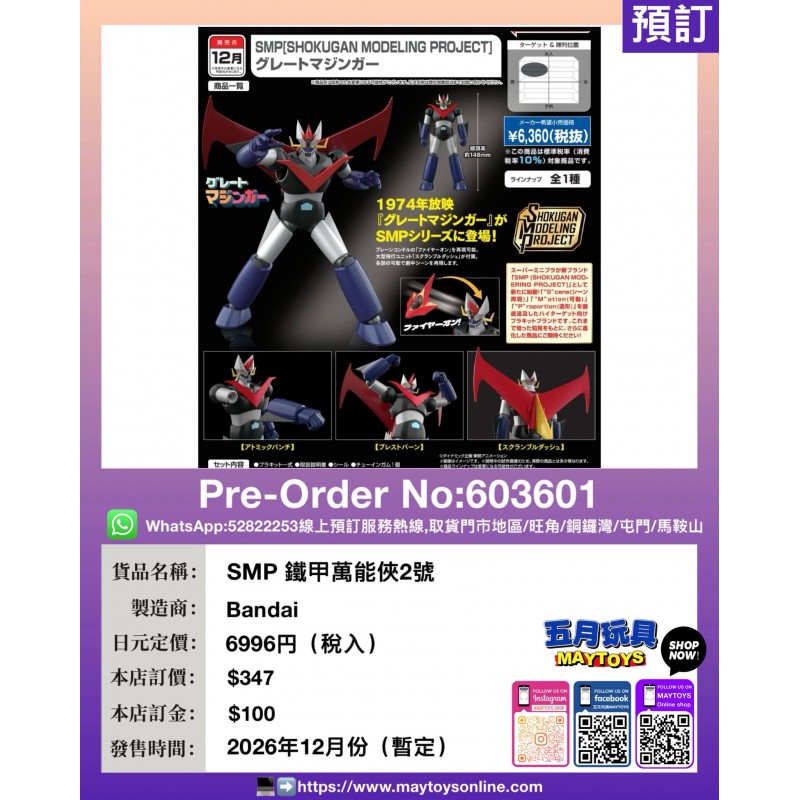• 暫定發售日期:(預計2026年12月到貨)