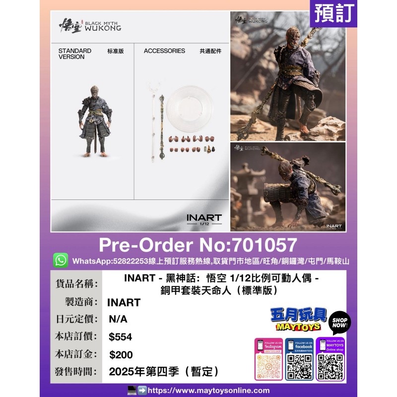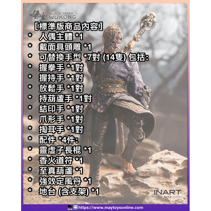 INART- 黑神話: 悟空 1/12比例 可動人偶 - 銅甲套裝天命人 (標準版)