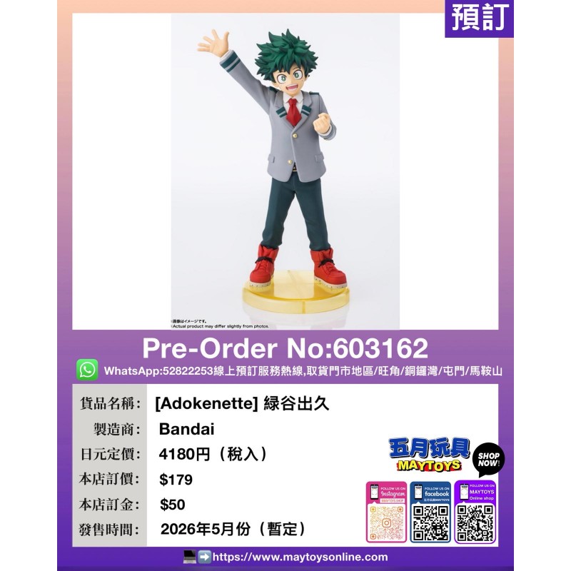 4) 預訂貨品會有延期可能,相關資訊請客人自行留意商品官方網站。若因生產商或代理商問題而令貨品出現延期情況本店並不會另行通知客人及退回已收取之訂金,因此請客人考慮清楚是否接受此類情況才決定預訂貨品!