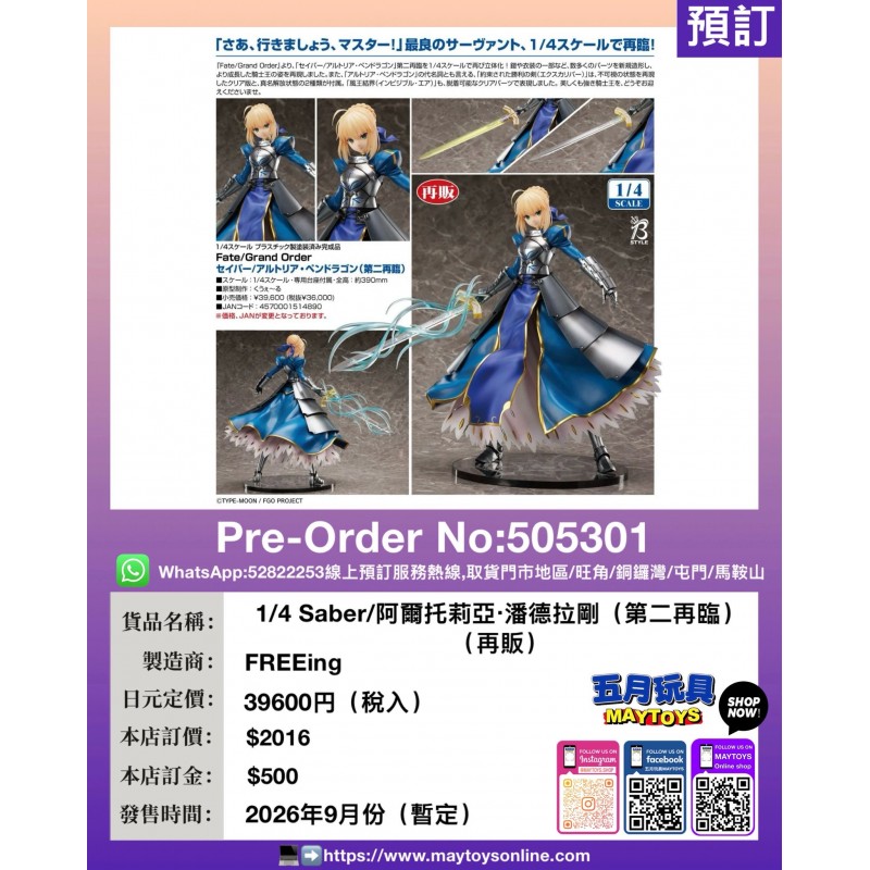 1/4 Saber/阿爾托莉亞·潘德拉剛 (第二再臨) (再販)