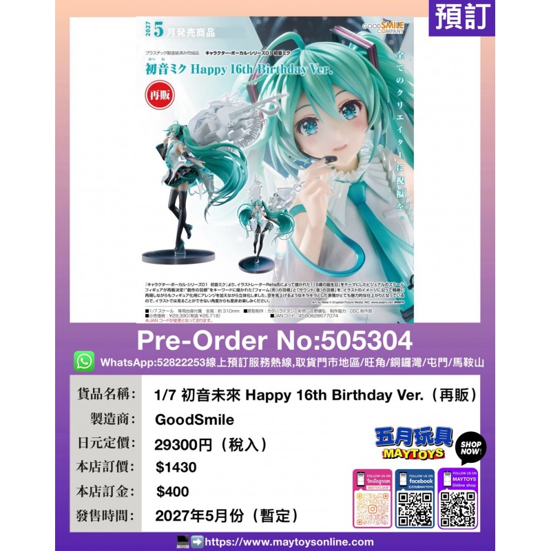 1/7 初音未來 Happy 16th Birthday Ver. (再販)