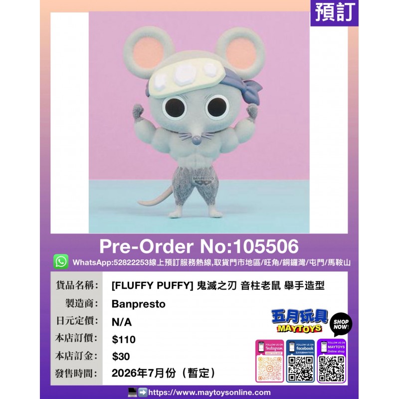 [FLUFFY PUFFY] 鬼滅之刃 音柱老鼠 舉手造型