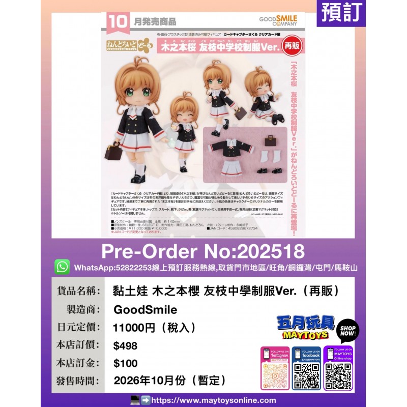 黏土娃 木之本櫻 友枝中學制服Ver. (再販)