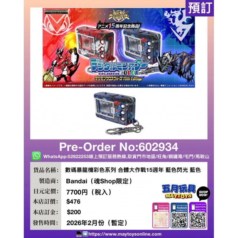 數碼暴龍機彩色系列 合體大作戰15週年 藍色閃光 藍色