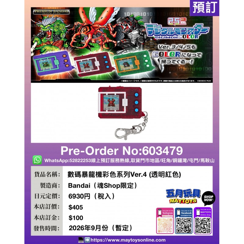 數碼暴龍機彩色系列 Ver.4 (透明紅色) (魂Shop限定)