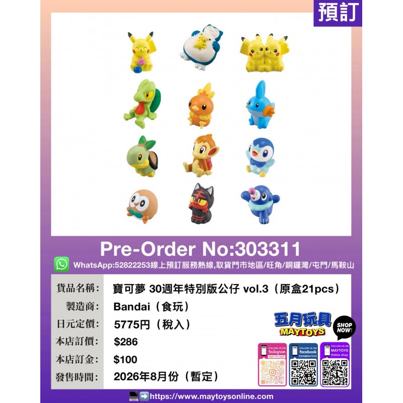 寶可夢 30週年特別版公仔 vol.3 (原盒21pcs)