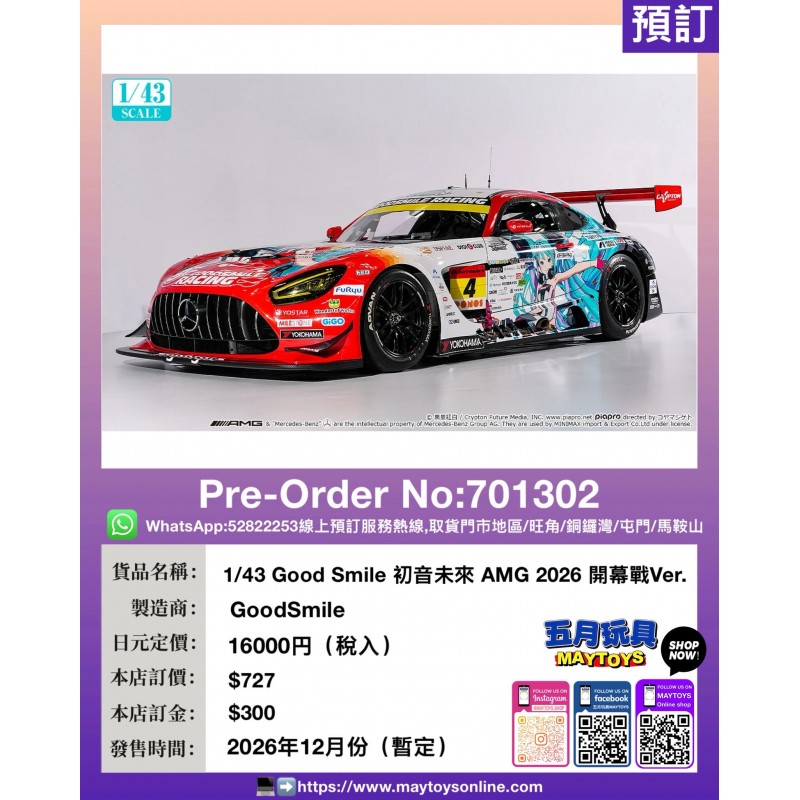 1/43 Good Smile 初音未來 AMG 2026 開幕戰Ver.