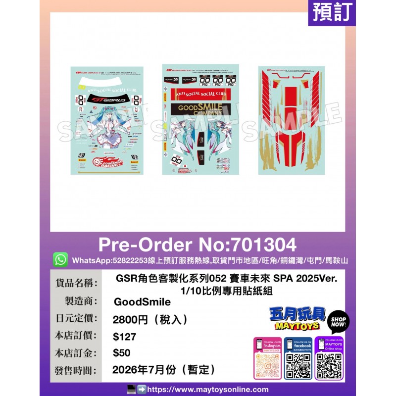GSR角色客製化系列052 賽車未來 SPA 2025Ver. 1/10比例專用貼紙組