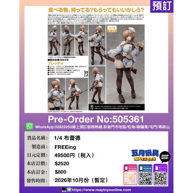 4) 預訂貨品會有延期可能,相關資訊請客人自行留意商品官方網站。若因生產商或代理商問題而令貨品出現延期情況本店並不會另行通知客人及退回已收取之訂金,因此請客人考慮清楚是否接受此類情況才決定預訂貨品!