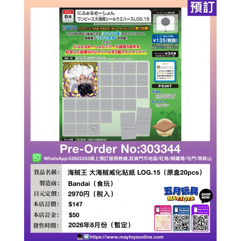 海賊王 大海賊威化貼紙 LOG.15 (原盒20pcs) (食玩)