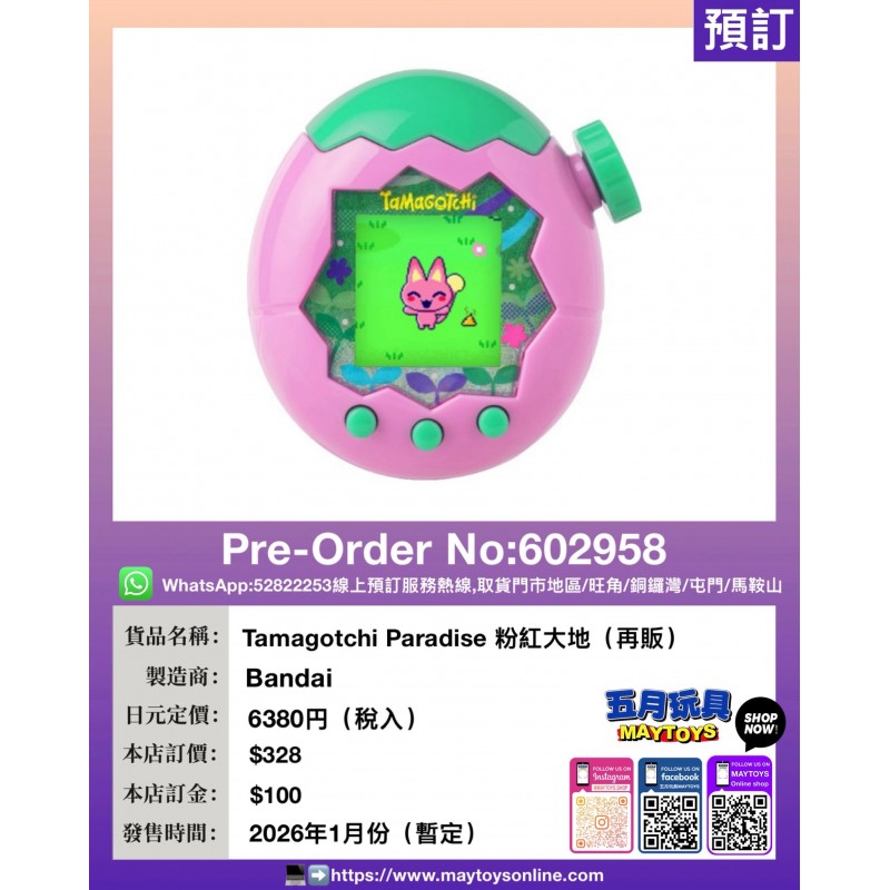4) 預訂貨品會有延期可能,相關資訊請客人自行留意商品官方網站。若因生產商或代理商問題而令貨品出現延期情況本店並不會另行通知客人及退回已收取之訂金,因此請客人考慮清楚是否接受此類情況才決定預訂貨品!