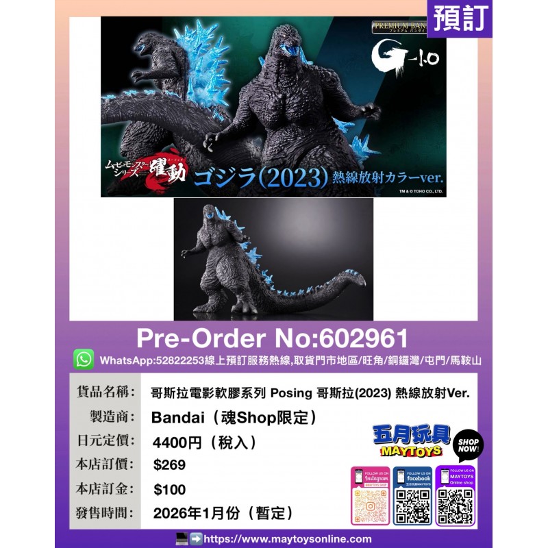 哥斯拉電影軟膠系列 Posing哥斯拉(2023) 熱線放射Ver. (魂Shop限定)