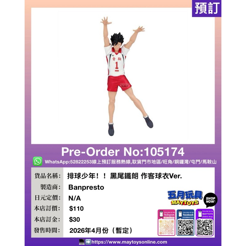 [景品] 排球少年!!黑尾鐵朗 作客球衣Ver.