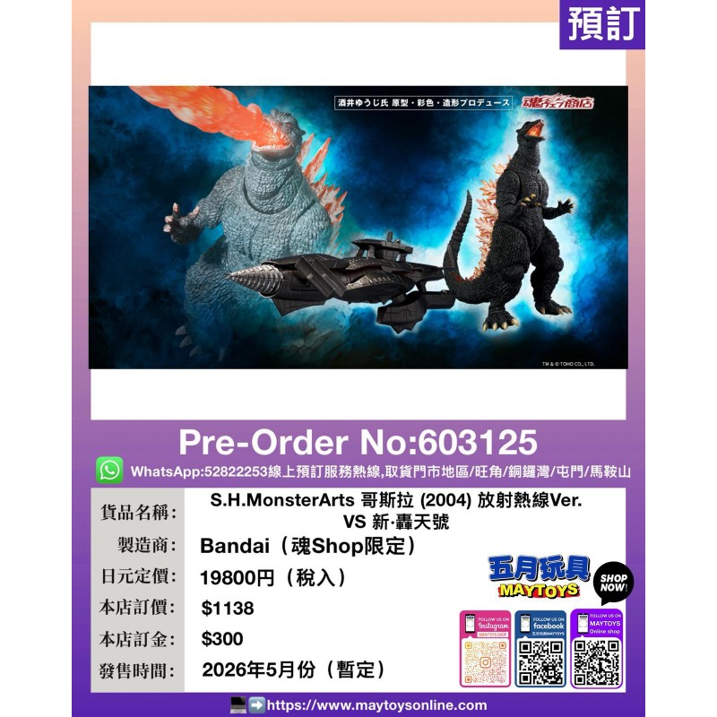 ![[S.H.MonsterArts] 哥斯拉 (2004) 放射熱線Ver. VS 新•轟天號 (魂Shop限定) [S.H.MonsterArts] 哥斯拉 (2004) 放射熱線Ver. VS 新•轟天號 (魂Shop限定)](https://preorder.maytoysonline.com/image/cache/06-BANDAI類/603125-393x393.jpeg)