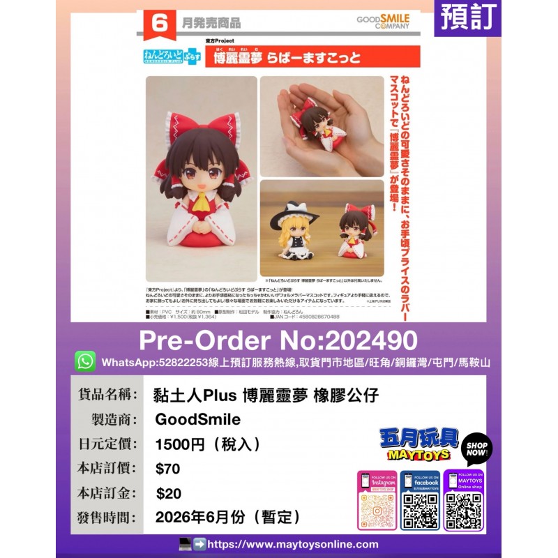 黏土人Plus 博麗靈夢 橡膠公仔-4580828670488