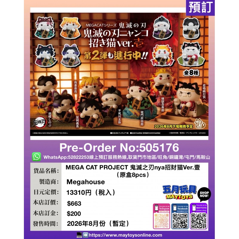 MEGA CAT PROJECT 鬼滅之刃 nya招財貓Ver.壹 (原盒8pcs)