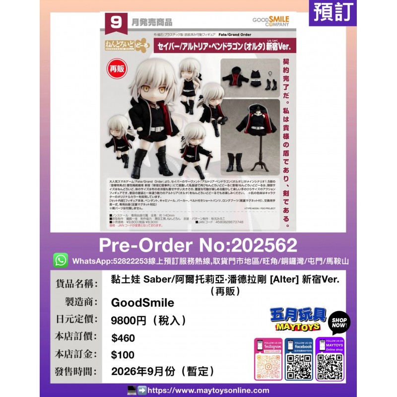 黏土娃 Saber/阿爾托莉亞·潘德拉剛 [Alter] 新宿 Ver. (再販)