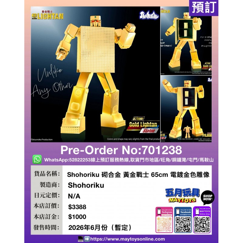 Shohoriku 砌合金 黃金戰士 65cm 電鍍金色雕像
