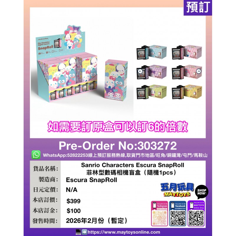 ![Sanrio Characters Escura SnapRoll 菲林型數碼相機 盲盒 (隨機1pcs) [如需要原盒請訂6pcs] Sanrio Characters Escura SnapRoll 菲林型數碼相機 盲盒 (隨機1pcs) [如需要原盒請訂6pcs]](https://preorder.maytoysonline.com/image/cache/00-sub/303272-3-74x74.jpg)