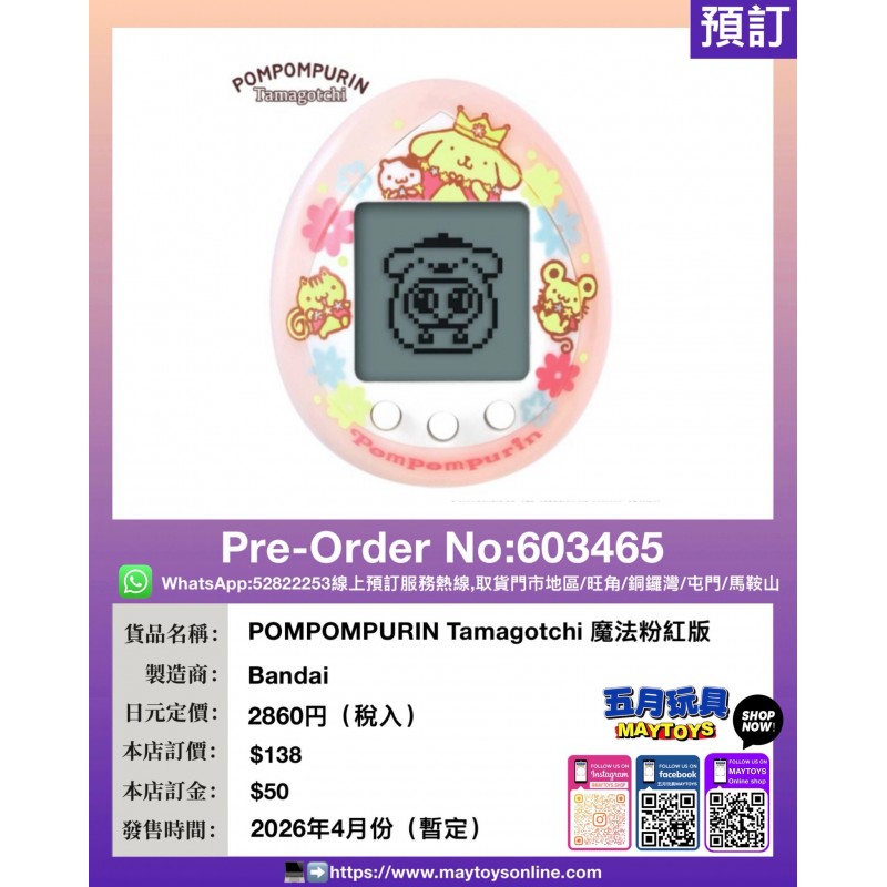 POMPOMPURIN Tamagotchi 魔法粉紅版