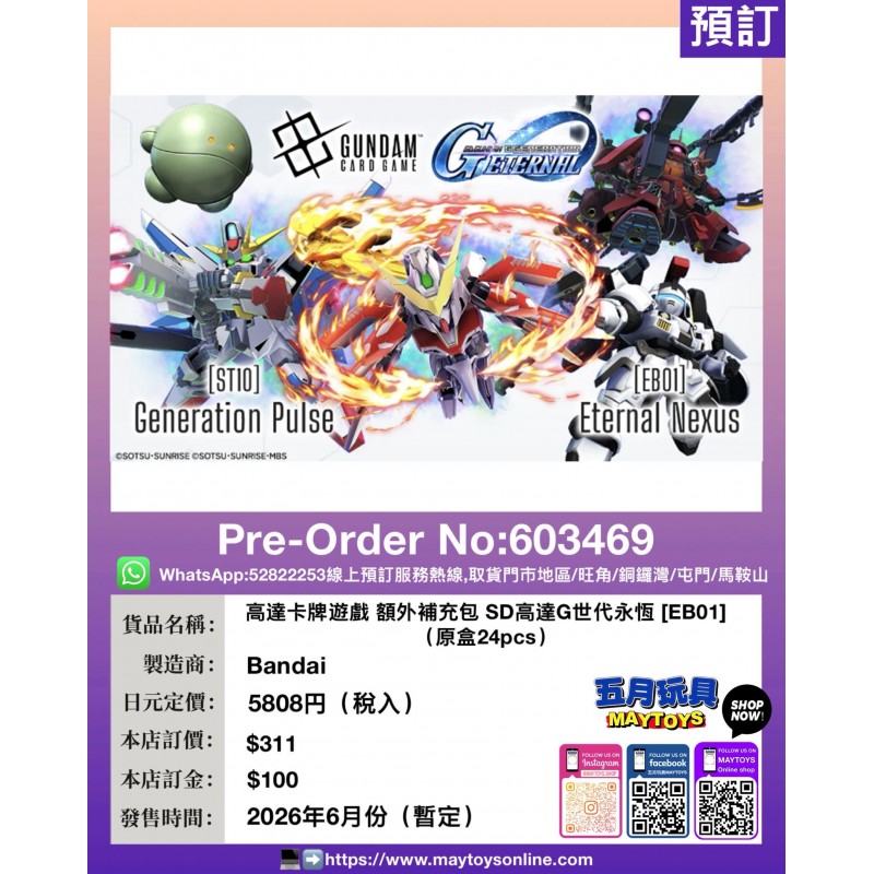 高達卡牌遊戲 額外補充包SD高達G世代永恆 [EB01] (原盒24pcs)